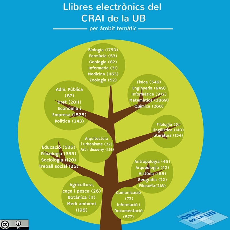 Aquí podeu veure el nombre de llibres que tenim al CRAI UB de cada àmbit temàtic: