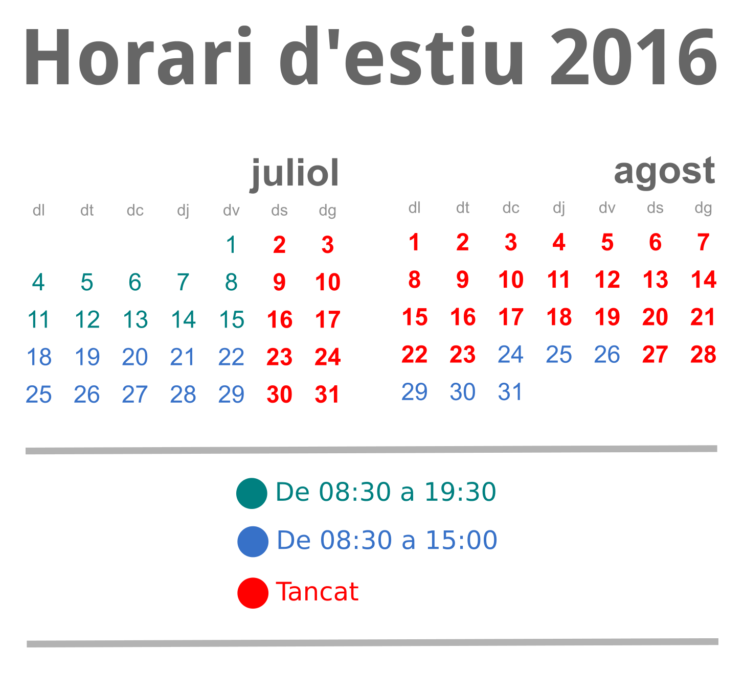 - Els documents de préstec normal prestats i renovats a partir del dia 8 de juliol de 2016, tindran com a data de retorn el dia 1 de setembre de 2016.